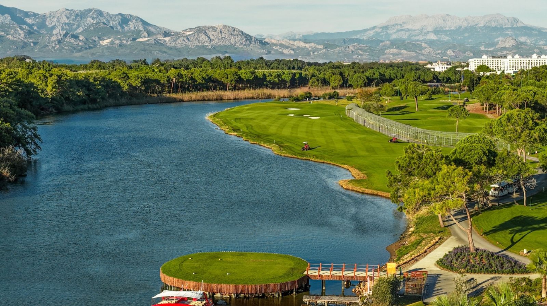 Cullinan Links Golf Club, der ligger i Belek, Tyrkiet (tidligere kendt som Titanic Golf Club), er et fremragende supplement til områdets golfscene og tilbyder en udfordring for golfspillere på alle niveauer. Banen strækker sig over 36 huller med en Par på 71 for begge kurser (Olympos og Aspendos), og giver spillerne forskellige tee-muligheder og en varieret spilleoplevelse. Fairways er bredt anlagte og lavet af Bermuda-græs, mens greens og bunkers er designet til at udfordre spillerens præcision. Klubben byder på en imponerende 36-hullers bane, designet af European Golf Design, og er et af de bedste golfsteder i regionen. Banen dækker 110 hektar og er unik som den eneste golfbane i Tyrkiet, der både har en flod og hav. Klubben er også kendt for sine moderne faciliteter, herunder en driving range, pro-shop og golfakademi. Ud over dets appel i dagtimerne tilbyder klubben en speciel oplevelse med ni oplyste huller til aften-golf, ideelt for golfspillere, der nyder at spille ved skumring.