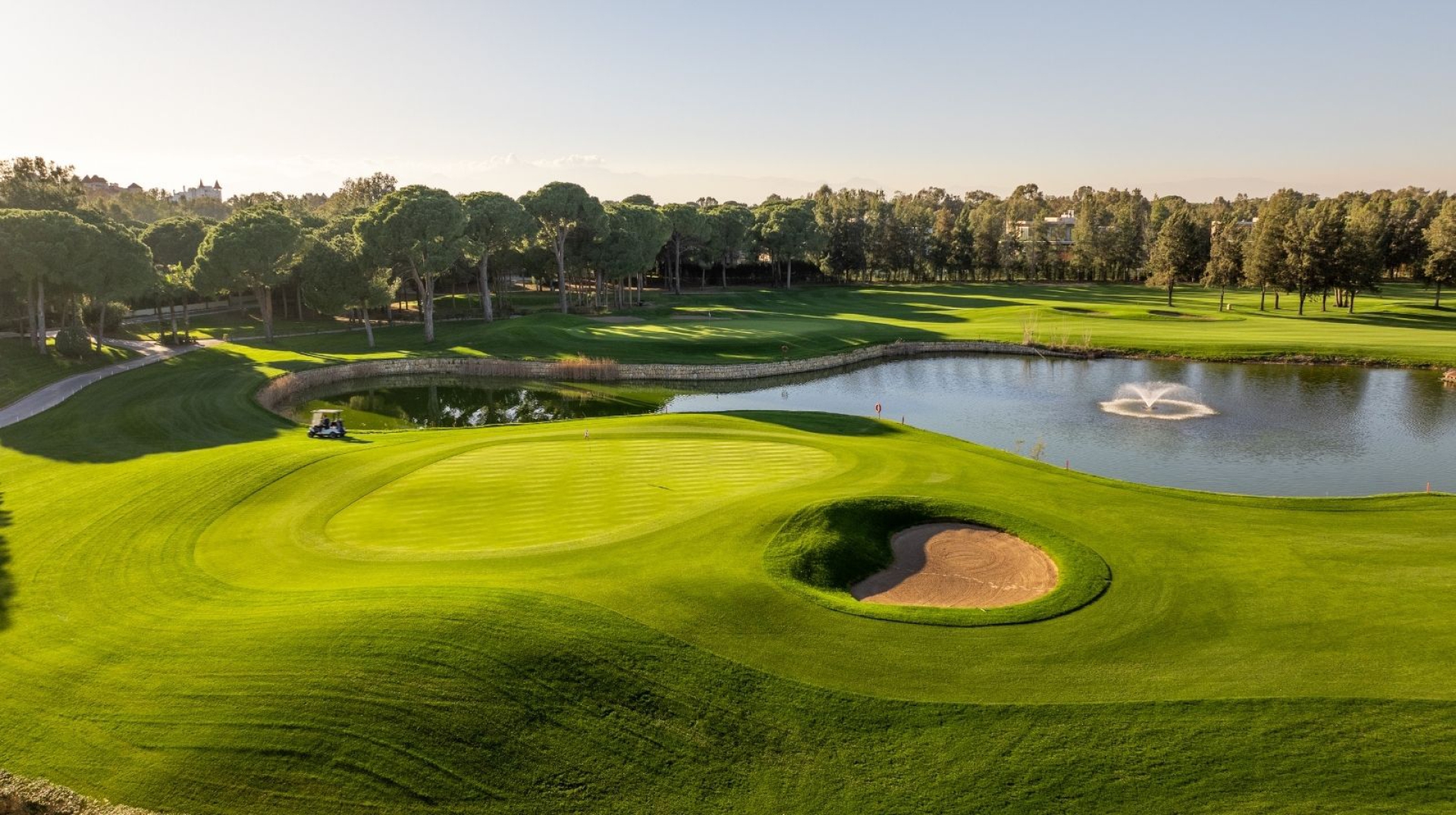 Baneopbygning:Kaya Palazzo Golf Club har en 18-hullers golfbane med smalle fairways, strategisk placerede bunkers og ni søer, der øger sværhedsgraden og den visuelle tiltrækning af banen. Banen byder på forskellige typer huller, herunder dramatiske risiko-belønningshuller samt kortere par 3 og par 4 huller, der kræver præcision.